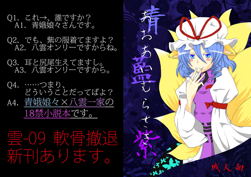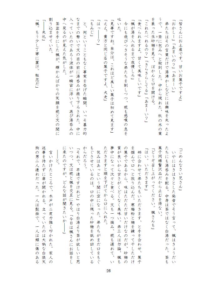 体調不良にて欠席させていただいた文々。新聞友の会にて頒布を予定していた、もみ♂×あやねちょSS本も持っていきます。